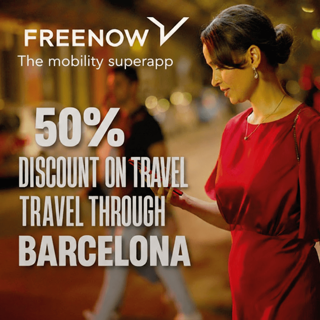 The #1 taxi app in Spain offers you an exclusive discount so that your next two taxi rides will cost you half price.