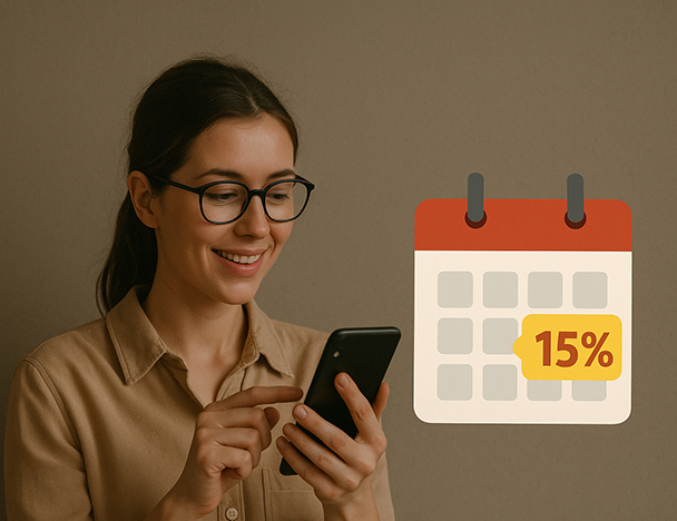 Si reservas con 7 días antes de tu llegada, tendrás un descuento del 15%